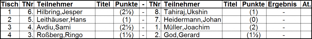 Die 3.Runde der Jugend ist leider noch nicht vollständig und muss bis nächsten Freitag nachgeholt werden.